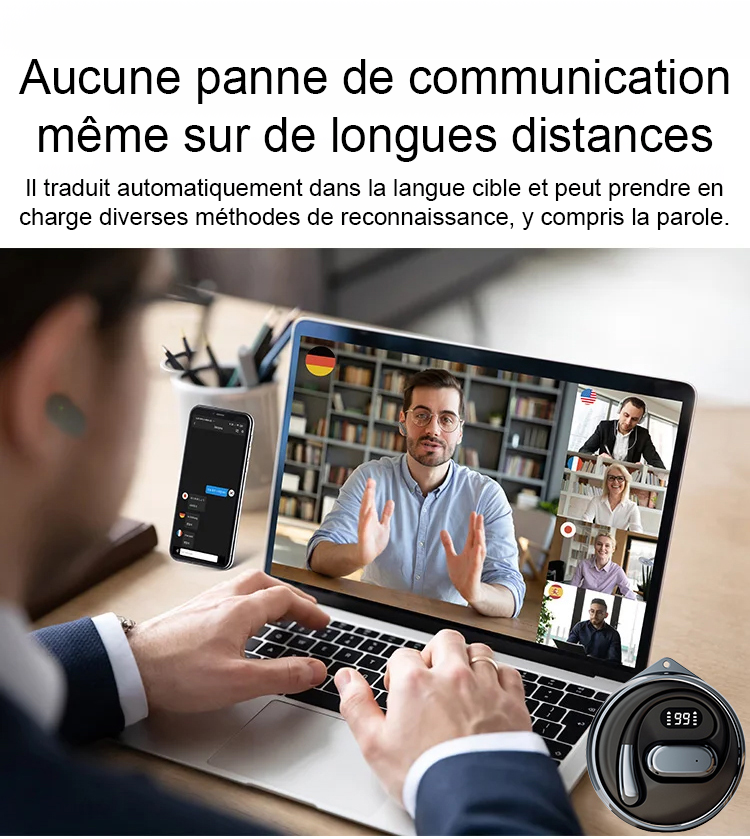 Ai traduction simultanée 144 langues, conception d'oreille suspendue confortable à porter pendant longtemps sans douleur